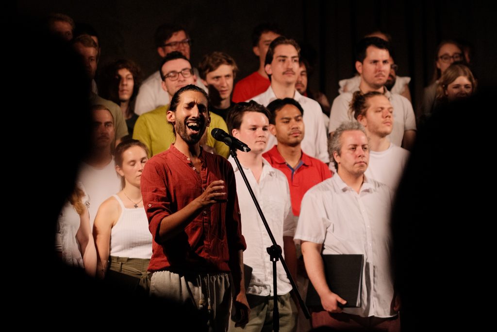 Unsere Sänger:innen bieten auf hohem Niveau eine abwechslungsreiche Mischung aus Pop und Klassik dar – a capella, mit Klavierbegleitung, Band oder auch zusammen mit unserem Orchester. Bei unserem Konzert im Juni 2025 präsentierten wir gemeinsam mit Band ein buntes Pop-Programm und setzten damit ein musikalisches Statement für Offenheit, Toleranz und Diversität.