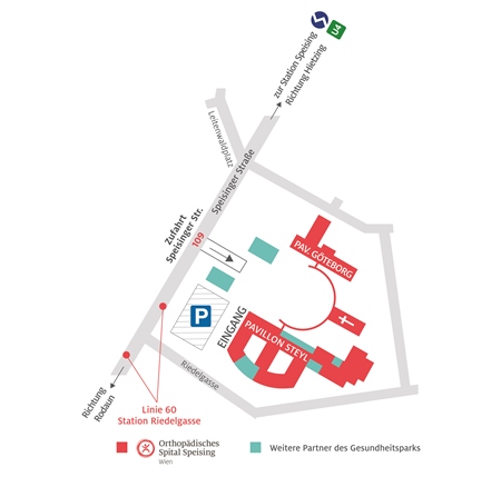 Öffentliche Erreichbarkeit mit Straßenbahnlinie 60 Station Riedelgasse, S-Bahn Linie S80 Haltestelle Speising oder U4 Station Hietzing.